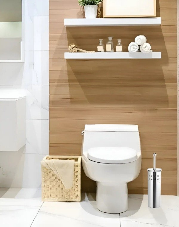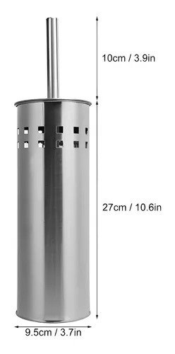 Escobilla porta cepillo acero inoxidable La escobilla posee un film protector que impide que se raye. Quitarlo antes de usar. *Características ---Color: Acero ---Material de fabricación: Acero inoxidable, plastico y bamboo ---Medidas: 39 cm alto x 10,5 cm ancho ---Largo de la escobilla: 35 cms aprox. ---Forma: Circular