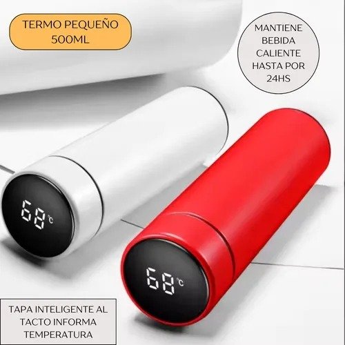 ---TERMO PEQUEÑO 500ML INTELIGENTE--- MEDIDAS LARGO: 23.5CM DIÁMETRO: 6.5CM La botella térmica LED de 500 ml es la solución perfecta para quienes buscan mantener sus bebidas a la temperatura ideal durante todo el día. Con un diseño elegante y funcional, esta botella está fabricada en acero inoxidable, lo que garantiza durabilidad y resistencia. Su capacidad de conservación permite mantener las bebidas frías hasta 10 horas y calientes hasta 24 horas, ideal para el uso diario en la oficina, el gimnasio o al aire libre. ¡PUEDE SER TERMO PARA MATE! Equipado con un sistema de tapa inteligente y un filtro para té e infusiones, este producto se adapta a tus necesidades, permitiéndote disfrutar de tus bebidas favoritas en cualquier momento. Su boquilla de rosca asegura un cierre hermético, evitando derrames y garantizando una experiencia sin complicaciones. Además, es libre de BPA, lo que la convierte en una opción segura para el consumo diario. Con un peso de solo 400 g y dimensiones compactas, esta botella es fácil de transportar y almacenar. Su diseño ergonómico y su sistema antigoteo la hacen ideal para llevar en cualquier bolso o mochila. La luz LED integrada añade un toque moderno y práctico, permitiendo verificar la temperatura de la bebida de un simple toque. La botella térmica LED es más que un simple accesorio; es una herramienta que mejora tu estilo de vida. Ya sea que estés en casa, en el trabajo o disfrutando de una aventura al aire libre, esta botella se convertirá en tu compañera inseparable. Apuesta por la calidad y la innovación con este producto que combina funcionalidad y diseño.